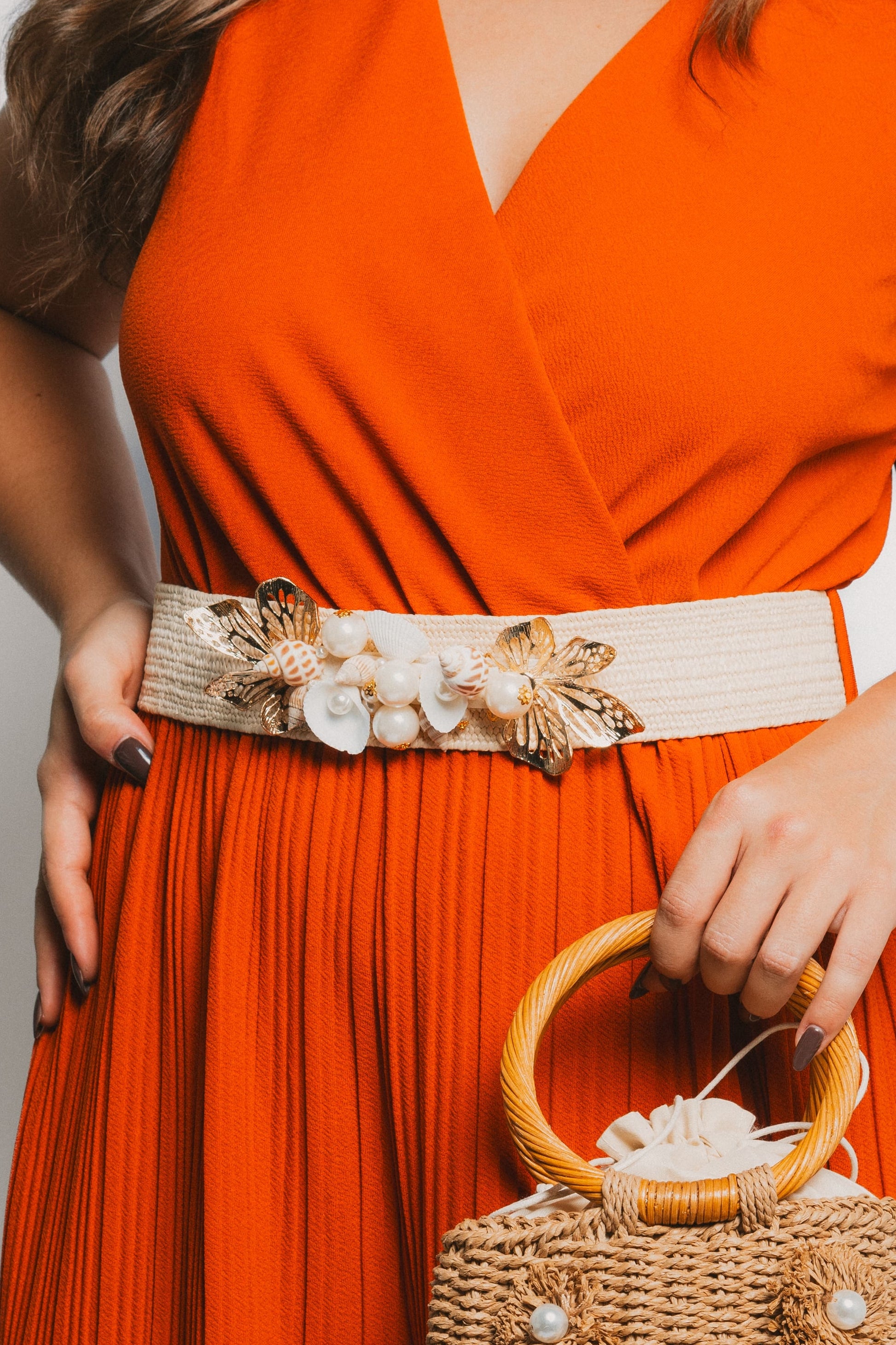 Faja Blanca con Flores Doradas